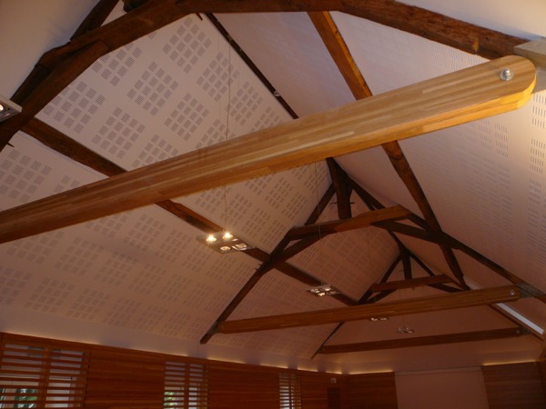 Dans ce projet, ancien et moderne se côtoient, tels les entraits en lamellé-collé de chêne qui renforcent la charpente existante.
