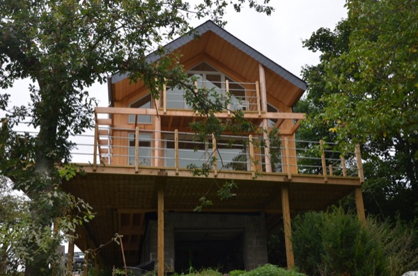 La maison de vacances est donc un bâtiment d’aspect léger, grâce aux divers éléments suivants : bardage en bois, grandes surfaces vitrées, création de porte-à-faux, brise-soleil, dépassants de toiture…