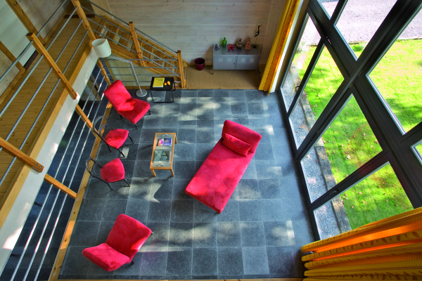 - Implanter le bâtiment en fonction du relief naturel du terrain. A cet effet, le bâtiment s’organise en demi-niveaux afin de s’adapter au mieux au terrain naturel.